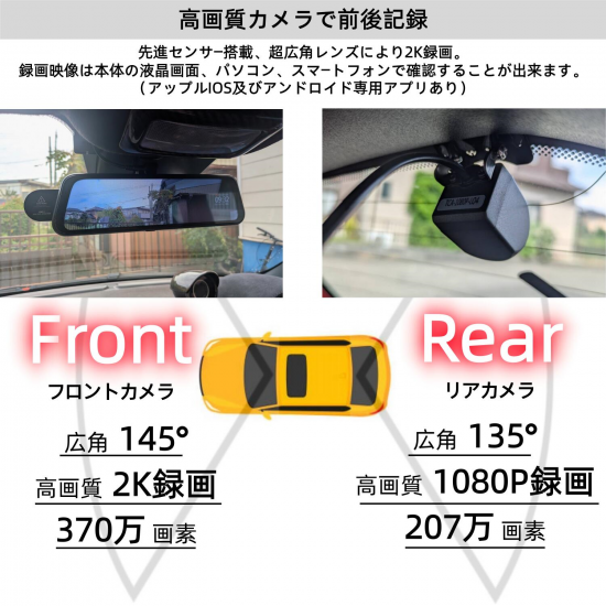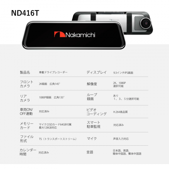 【新発売】Nakamichi ミラー型 前後2カメラ ドラレコ ナカミチ ドライブレコーダー ND416T