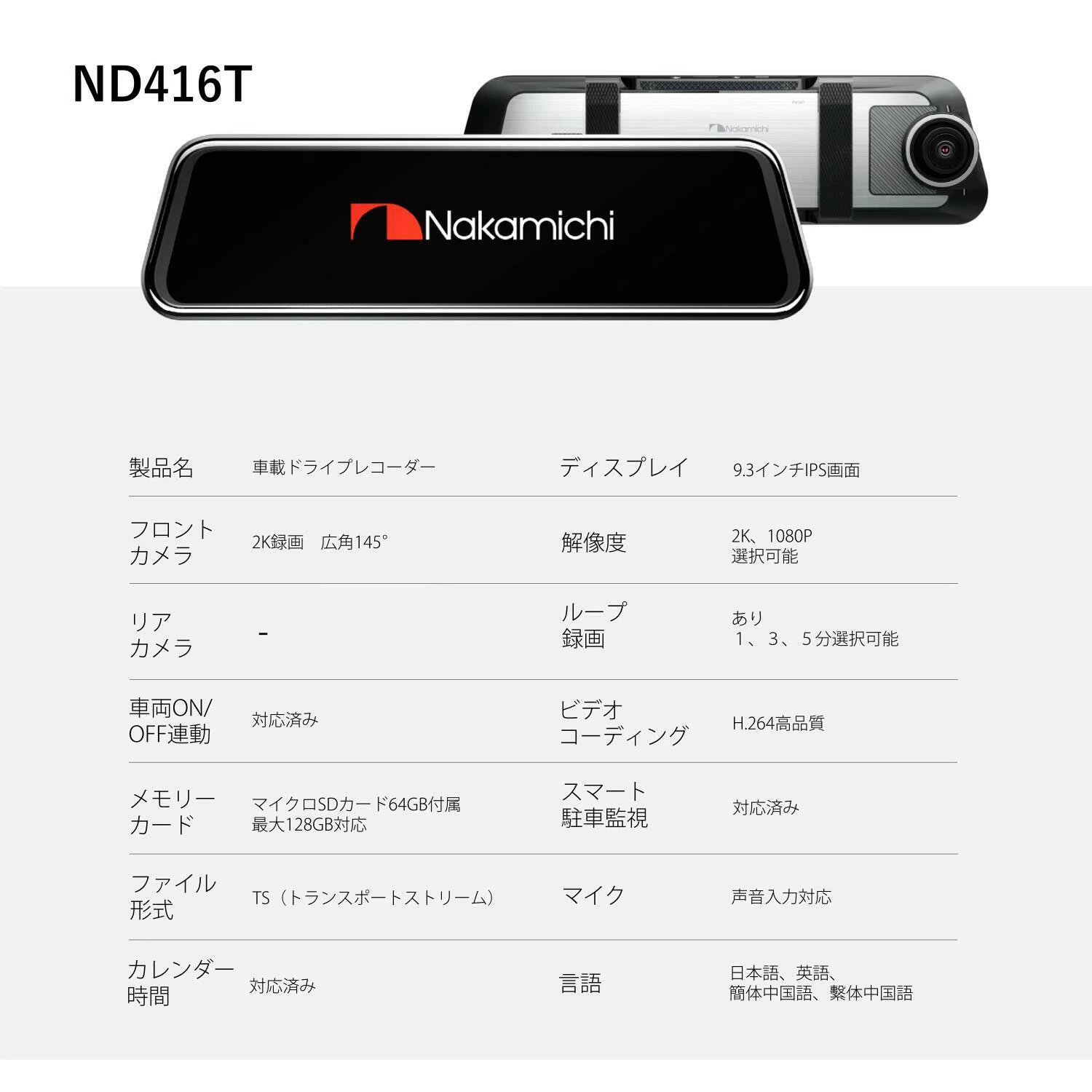 【新発売】Nakamichi ミラー型 前方カメラ ドラレコ ナカミチ ドライブレコーダー ND416T