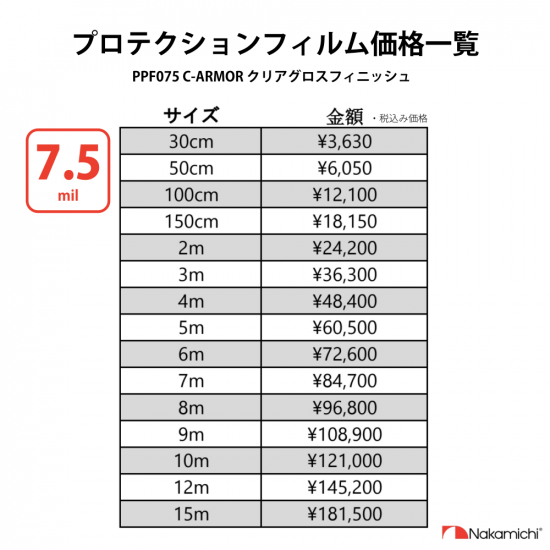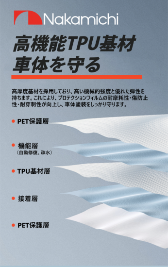 【新発売】Nakamichi ナカミチ製 PPF プロテクッションフィルム 厚さ7.5mil 1.52×15m 超疎水性 セルフヒーリング クリアグロスフィニッシュ 飛び石 カーボディ 傷防止
